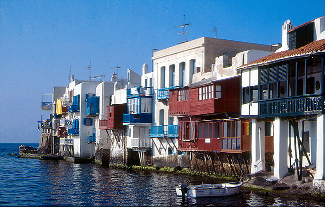 Essa ilha deliciosa, com suas casas brancas e cheia de minúsculas igrejas bizantinas de teto arredondado, é bem badalada. Chóra, a principal cidadezinha da ilha, na qual fica o porto, foi construída como um labirinto de ruelas estreitas, de chão de pedra. Um dos pontos mais animados é o bairro Venetia, com suas casas de balcões debruçados sobre o mar.